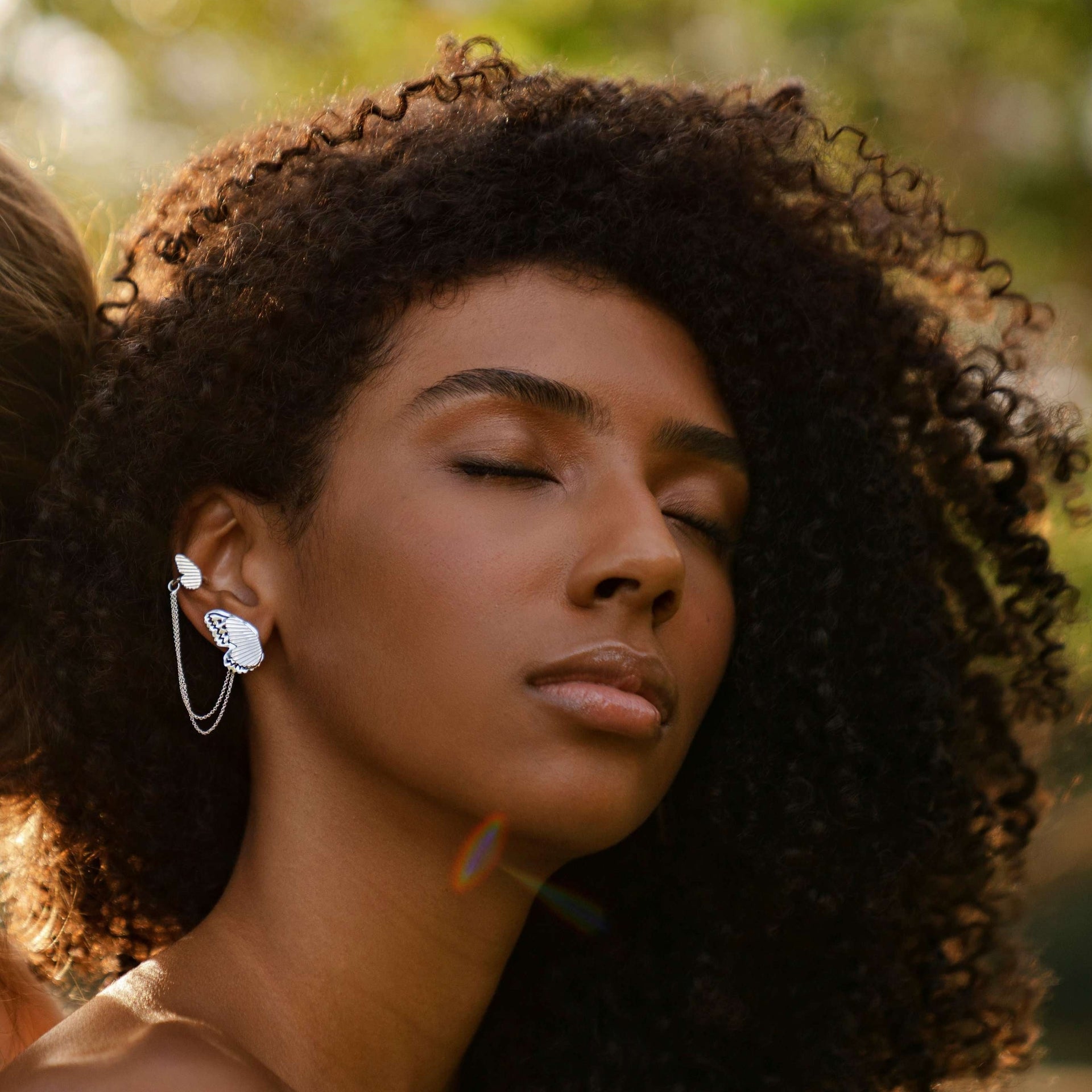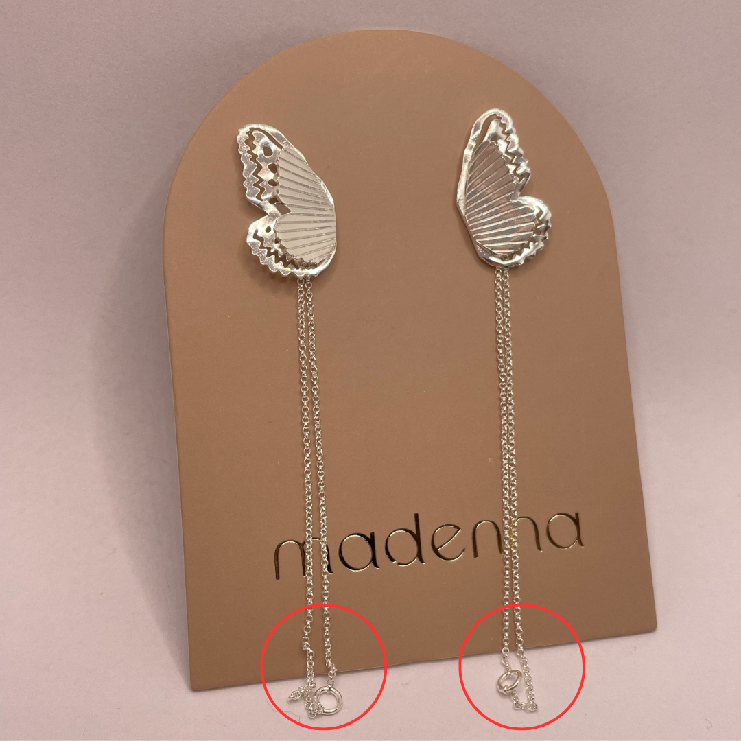 Brinco de meia asa da borboleta esmeralda com corrente dupla sem o piercing.