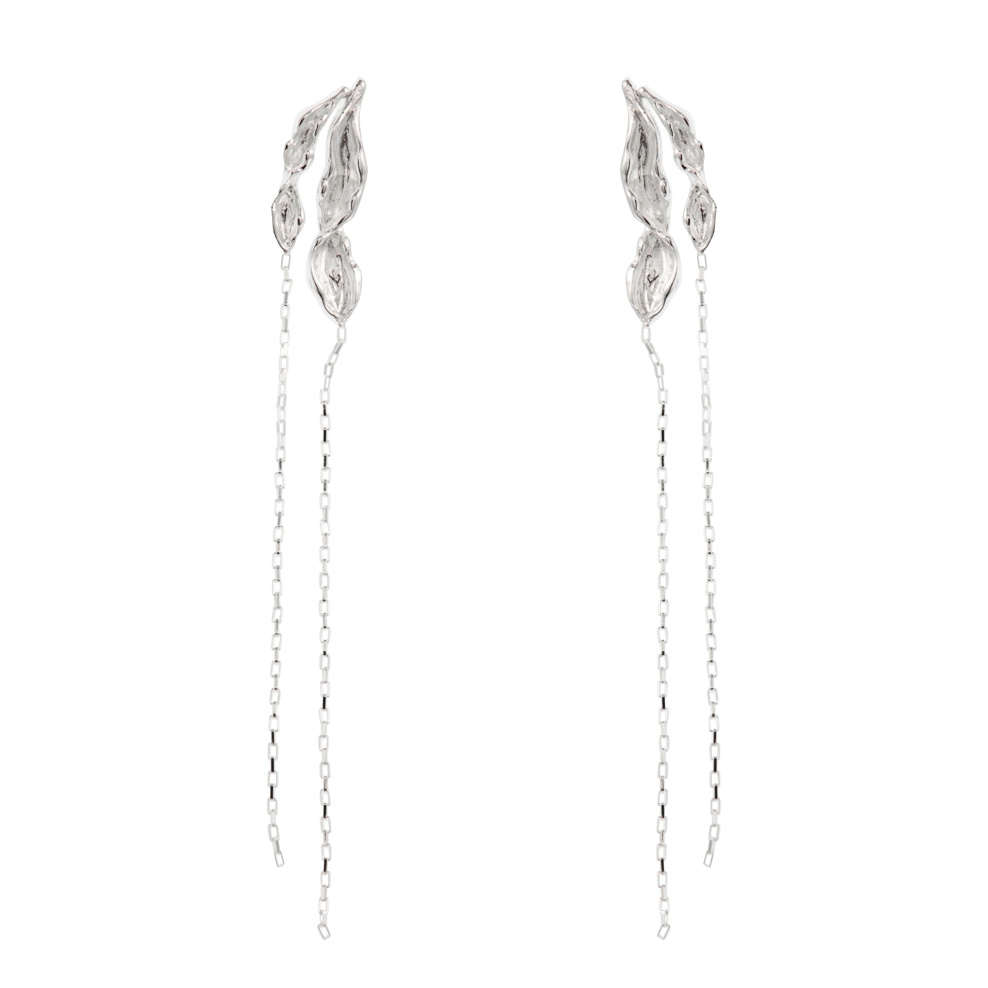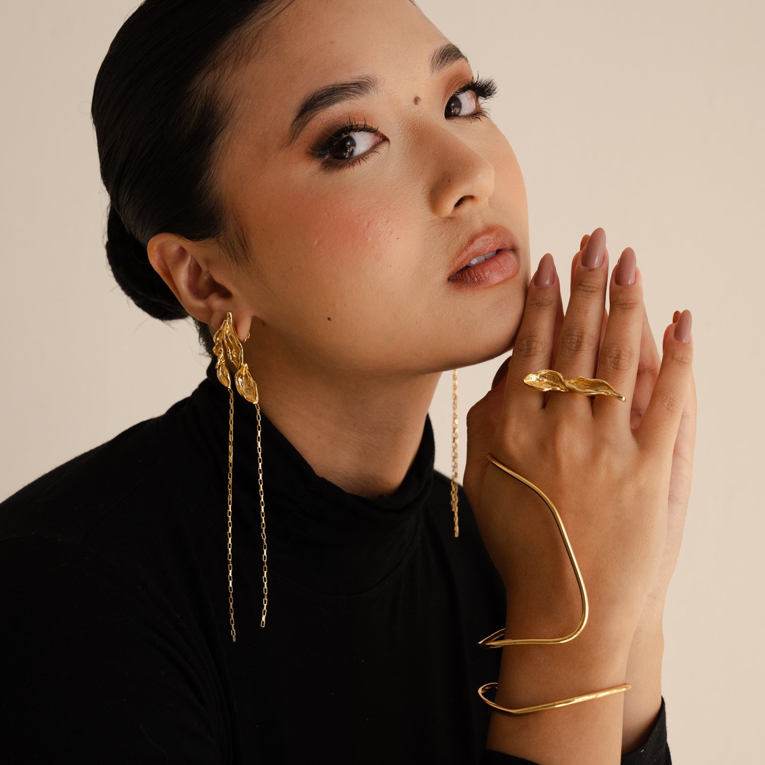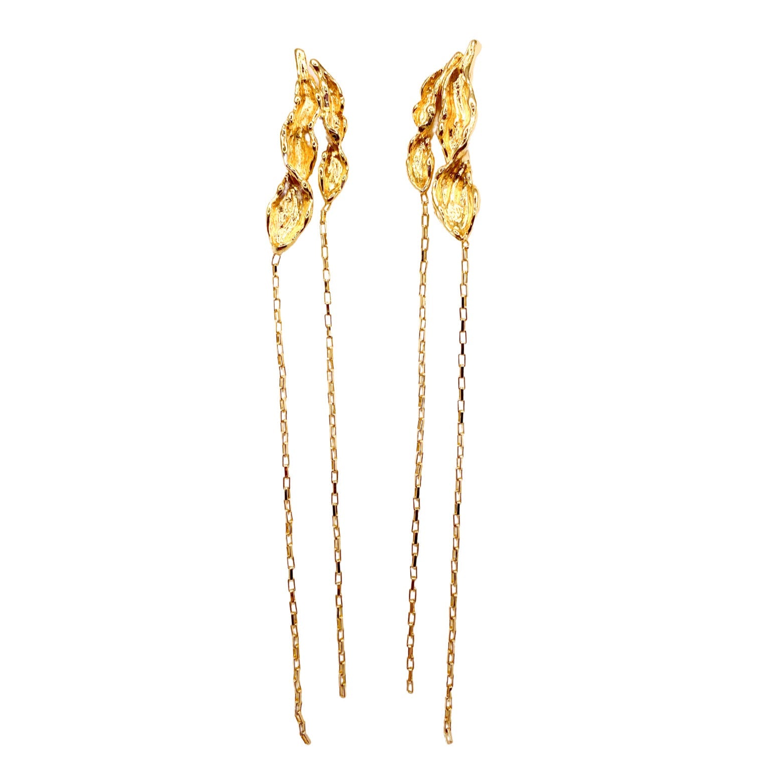 Brinco inspirado no raio de sol. Possui duas correntes como franjas.
