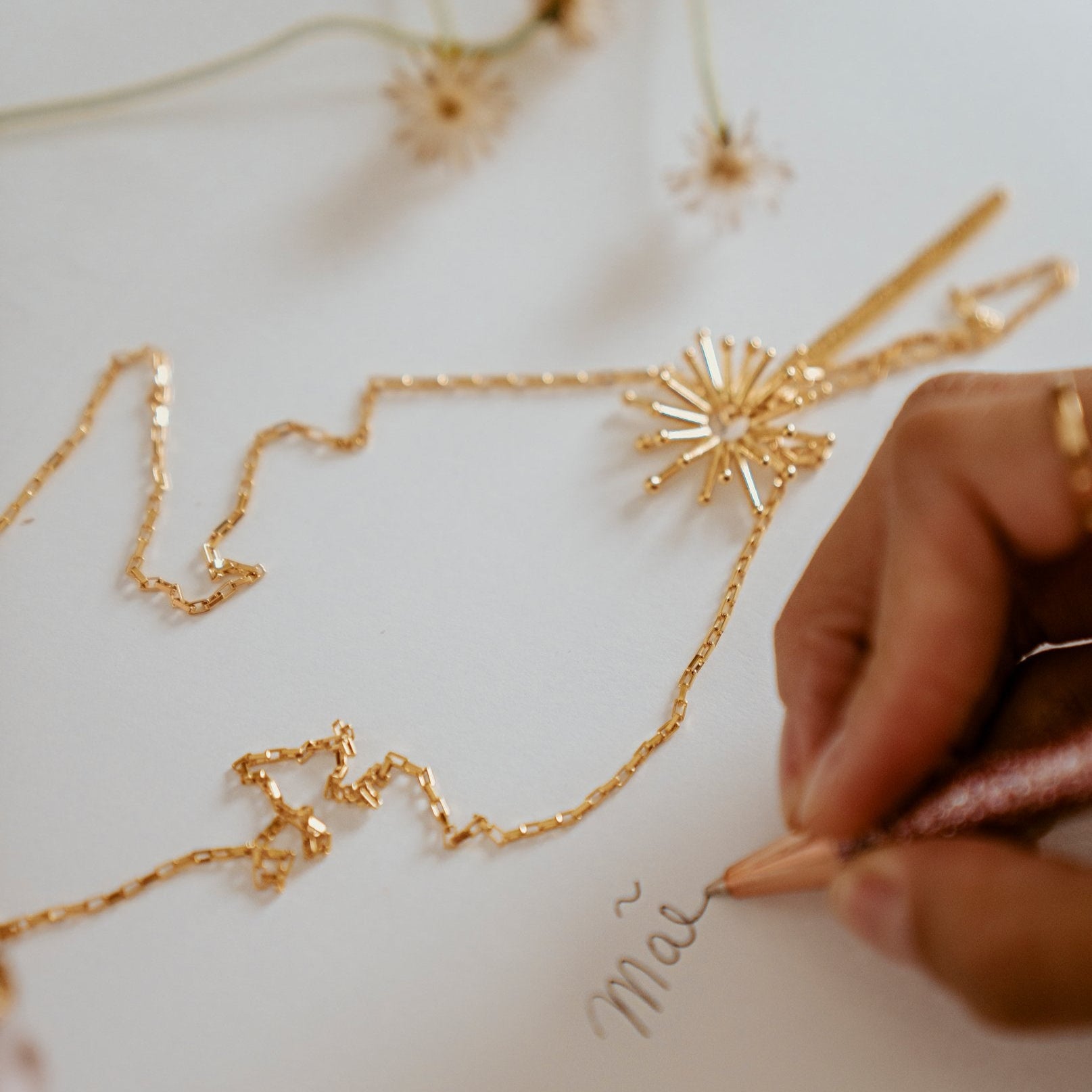 O Colar Gravatinha Dente de Leão é a união do amor materno à força da esperança — uma peça criada em parceria com a poetisa Fernanda Gonzaga.