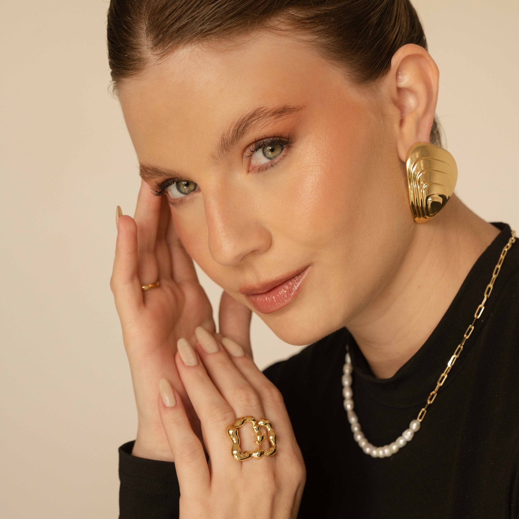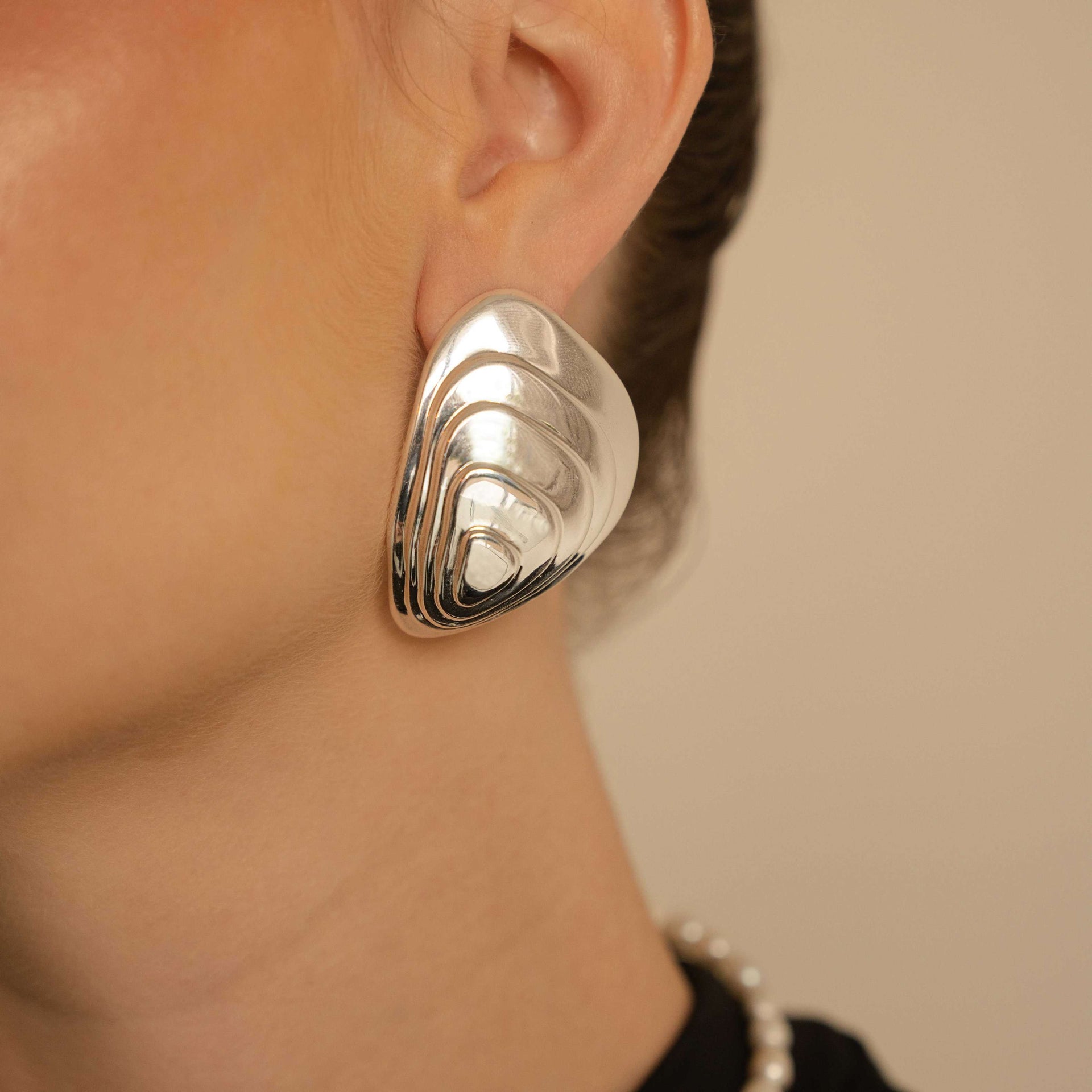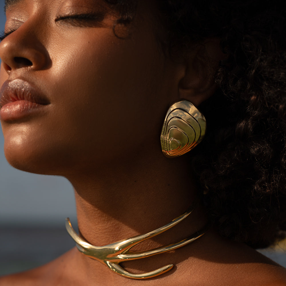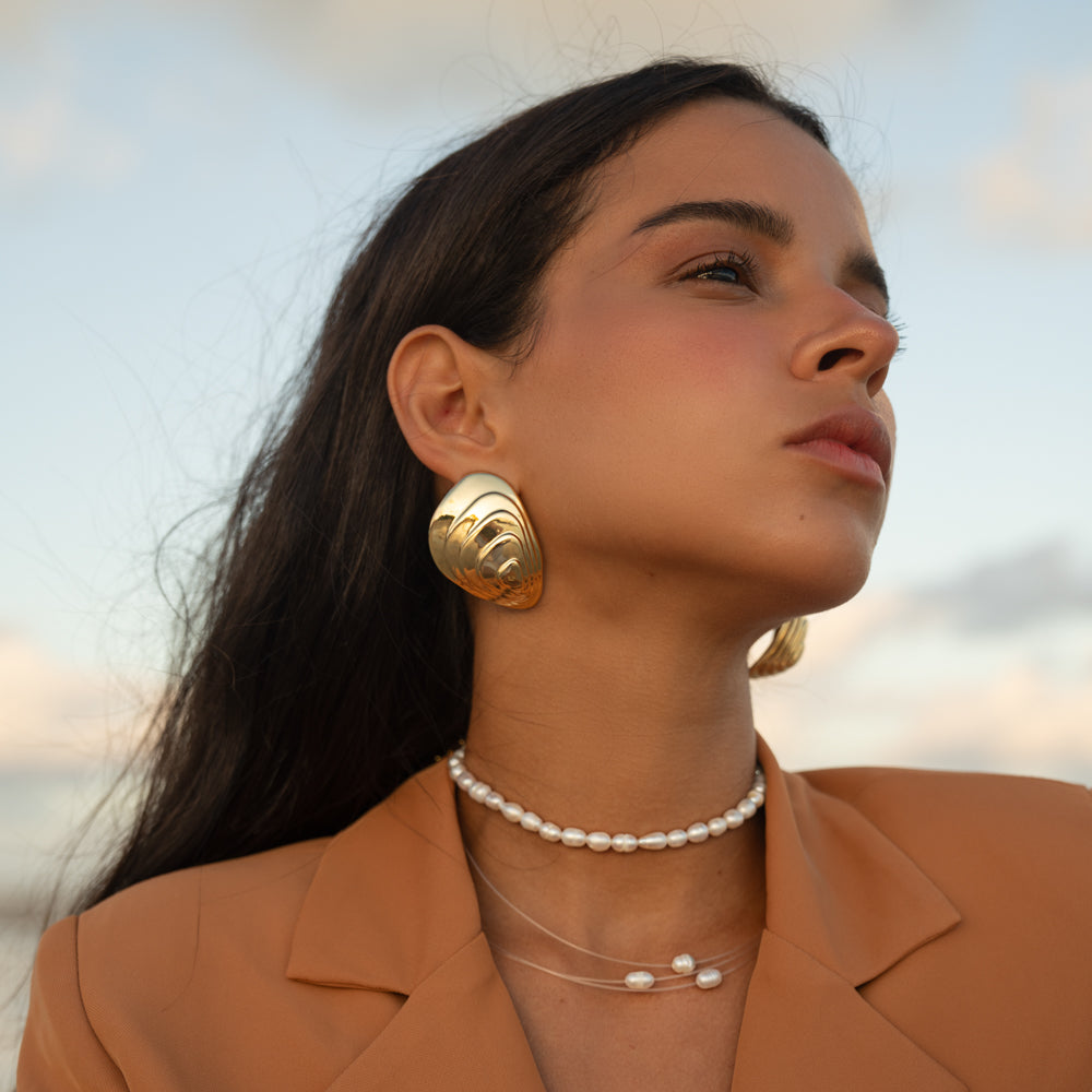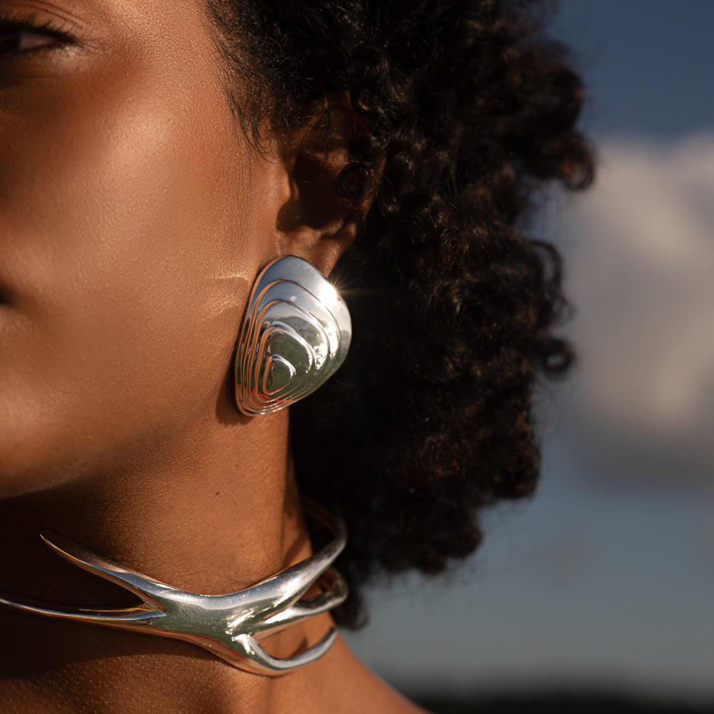 Brinco grande inspirado na concha da ostra.