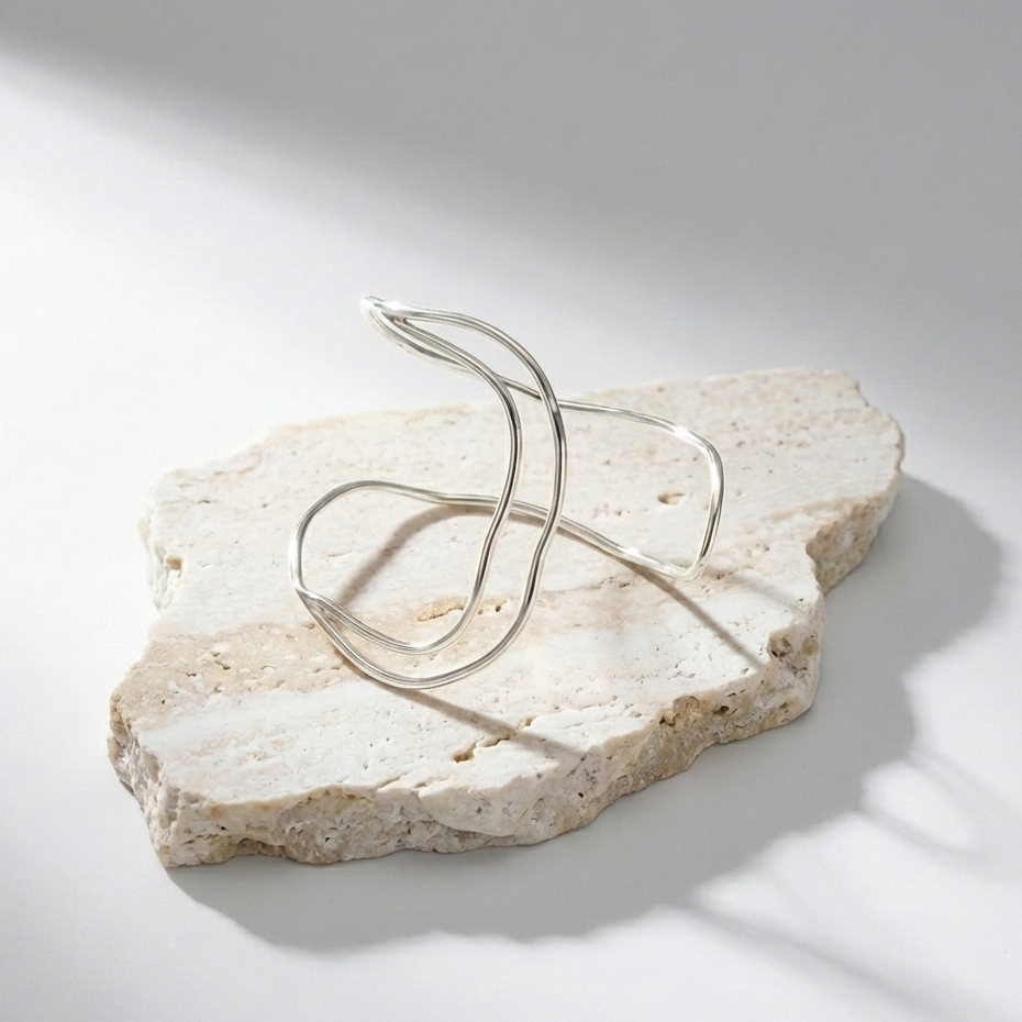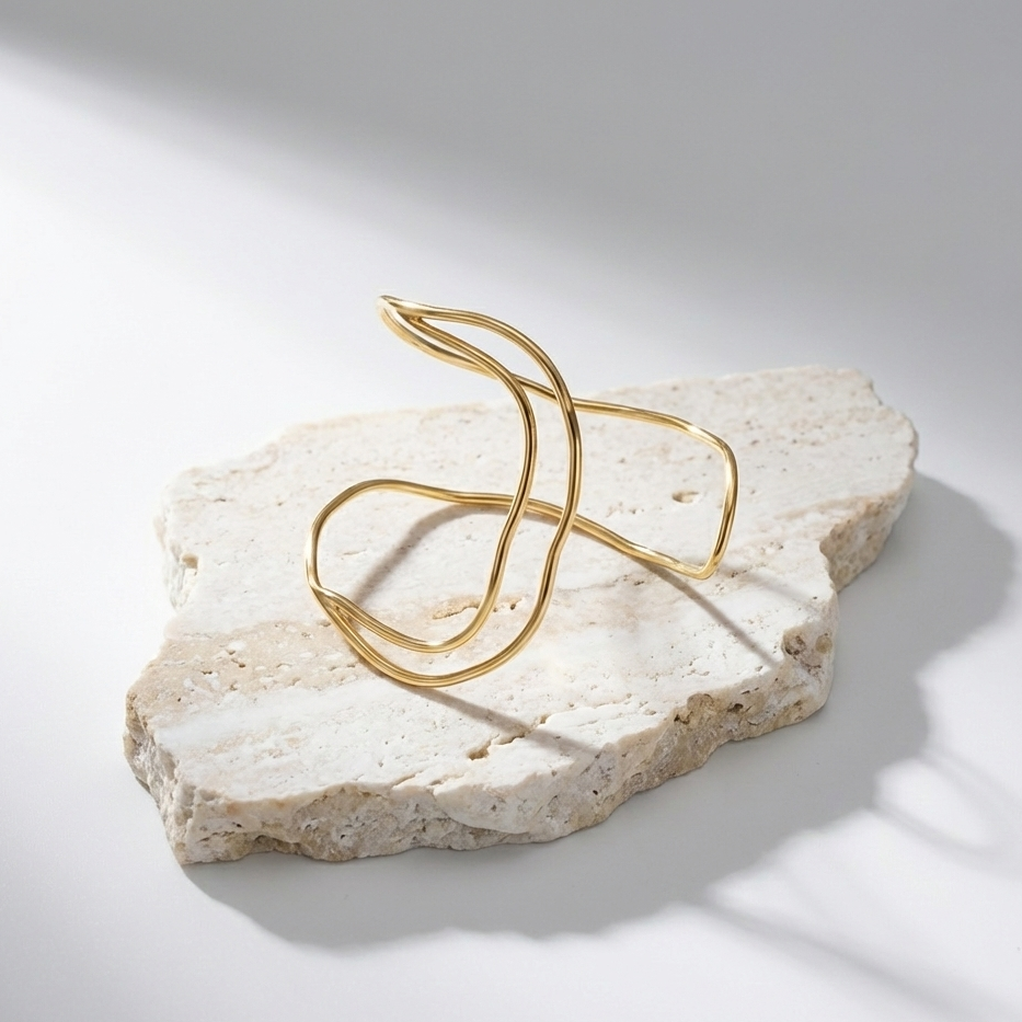 Bracelete ajustável vazado em fio metálico.